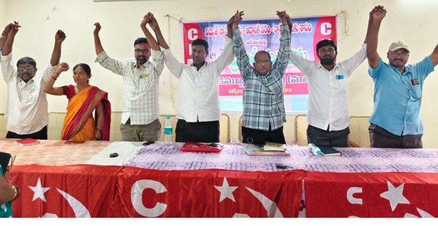 స్మార్ట్ మీటర్లు-ఆదానికి* *వరం-రాష్ట్ర* *ప్రజలకు శాపం".* అనే అంశంపై "*ప్రాంతీయ సదస్సును ఉద్దేశించి భారత కమ్యూనిస్టు పార్టీ (మార్క్సిస్టు), సిపిఎం జిల్లా కార్యదర్శి జి.చంద్రశేఖర్ మాట్లాడుతూ... 1998 లో నాటి ఉమ్మడి రాష్ట్రం ముఖ్యమంత్రిగా నారా చంద్రబాబు నాయుడు విద్యుత్ సంస్కరణల పేరిట ప్రైవేట్ రంగాన్ని ప్రవేశపెట్టి ప్రజలపై మోయలేని విద్యుత్ చార్జీల భారాన్ని ప్రారంభించారన్నారు. ప్రజల్లో పెద్ద ఎత్తున తిరుగుబాటు వచ్చి "బషీర్బాగ్ ప్రజా ప్రతిఘటన"పై కాల్పులు జరిగారని ముగ్గురు సిపిఎం కార్యకర్తలు అమరులైనారని గుర్తు చేశారు. వై.యస్.రాజశేఖర్ రెడ్డి ప్రతిపక్ష నాయకుడిగా నాడు కమ్యూనిస్టుల ఉద్యమానికి మద్దతు తెలియజేసి, అధికారంలోకి వచ్చాక అదే విద్యుత్ సంస్కరణలను అమలు చేసి ప్రజలపై భారాలు కొనసాగించారని గుర్తు చేశారు. 2014 రాష్ట్ర విభజన తర్వాత నవ్యాంధ్రప్రదేశ్ సీ.ఎం. గా మళ్లీ టిడిపి అధికారంలోకి రావటంతో విద్యుత్ భారాలు కొనసాగించారన్నారు. 2019లో జగన్మోహన్ రెడ్డి ఎన్నికల ముందు వ్యవసాయానికి ఉచిత విద్యుత్తు, గృహ అవసరాలకు 200 యూనిట్ల వరకు ఉచిత కరెంటు వాగ్దానం చేసి మాట నిలబెట్టుకోలేదని అన్నారు. 5 సంవత్సరాల ఆయన పరిపాలనలో ఆయన జోబి విద్యుత్తు కాంట్రాక్ట్ సంస్థలను ప్రవేశపెట్టి వారికి వేలకోట్ల విద్యుత్తు కాంట్రాక్టులు అప్పగించి ప్రజాధనాన్ని పరోక్షంగా లబ్ధి పొందారన్నారు. ఆదానితో సోలార్ విండో విద్యుత్తు ఒప్పందాలు మరొకసారి పునరుద్ధరించుకొని యూనిట్ విద్యుత్తు 2.45 ఉండగా ఒకే మారు 4.75 పైసలకు అమాంతంగా పెంచి ప్రజాతనాన్ని దోచుకోవడానికి కార్పొరేట్ సంస్థలకు అవకాశం కల్పించాలన్నారు. ఆదాని కంపెనీల లక్ష కోట్ల లబ్ధి చేకూర్చి వారి నుండి కిట్ ప్రోకో పద్ధతిలో 32 వేల కోట్లు వైసిపి ప్రభుత్వం ఎన్నికల నిధుల లబ్ధి పొందిందని పత్రికల్లో రాస్తున్నారని గుర్తు చేశారు. 2024 ఎన్నికల్లో రాష్ట్రంలో టిడిపి, బిజెపి, జనసేన ఎన్డీఏ కూటమి తిరిగి అధికారులకు వచ్చాక, 2024- 2025 "సేకి విద్యుత్తు ఒప్పందాలు" ఆదానే కంపెనీలతో, భవిష్యత్తు 25 సంవత్సరాలకు యూనిట్ విద్యుత్తు7 రూపాయలకు పెంచుకొని విక్రయించేందుకు ఒప్పందం చేసుకొని 1 లక్ష, 50 వేల కోట్ల రూపాయలు ప్రజలపై భారాలు వేసి, ప్రజలు నిలువు దోపిడీ చేయడానికి ఆదానికి లైసెన్సు ఇచ్చారని ఇందులోనూ ఆదాని కూటమి నాయకుల మధ్య కిట్ ప్రోకో అవినీతి జరిగిందని ఆరోపించారు. సిపిఎం జిల్లా కార్యదర్శి వర్గ సభ్యులు జీ.శివకుమార్ , జిల్లా కమిటీ సభ్యులు పి.చాన్ బాషా లు మాట్లాడారు. బద్వేల్ పట్టణ కమిటీ మోక్షమ్మ, బాబు, చిన్ని, షరీఫ్, శివ, సుబ్బరాయుడు, రాయప్ప, శాఖ కార్యదర్శులు బాలమ్మ, మస్తాన్ బి, కొండయ్య, మోరా ప్రసాద్ , బద్వేల్ రూరల్ కమిటీ కార్యదర్శి దాసరి వెంకటేష్, జయరాజ్ కృష